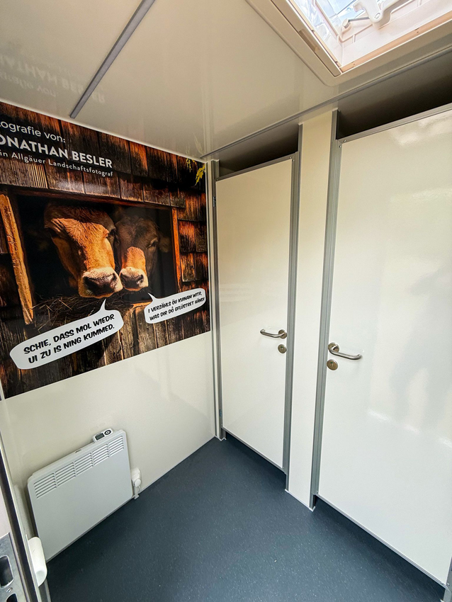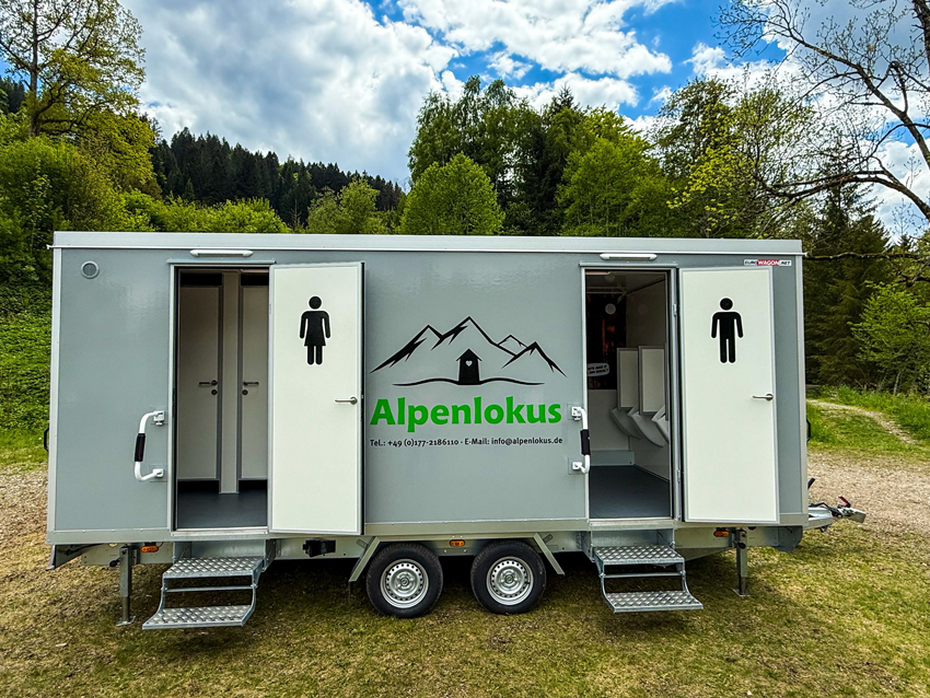 Unsere Standard Maxi hat zwei getrennte Eingangsbereiche ohne Überdachung, eine LED-Beleuchtung und nach unten ausklappbare 2-stufige Treppenanlagen aus Alu-Riffelblech. Zwei ausklappbare Handläufe runden den Zugang der hochwertigen Innenräume ab.
